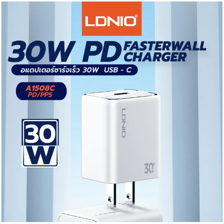 ข้อมูลเฉพาะของ LDNIO 30W Home Charger หัวชาร์จ30W อแดปเตอร์ชาร์จเร็ว USB-C PD 30W Fast charging ขนาดเล็กพกพาสะดวก รุ่น A1508C