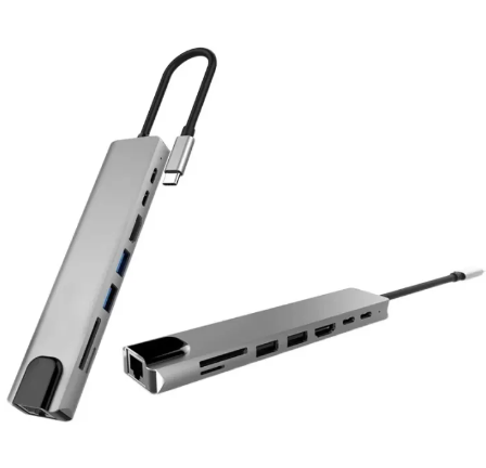 8 in 1 USB Type C Hub Hdmi Rj45 Lan Adapter for Macbook Pro Thunderbolt 3, USB C to Gigabit Ethernet Adapter USB-C Charger Port