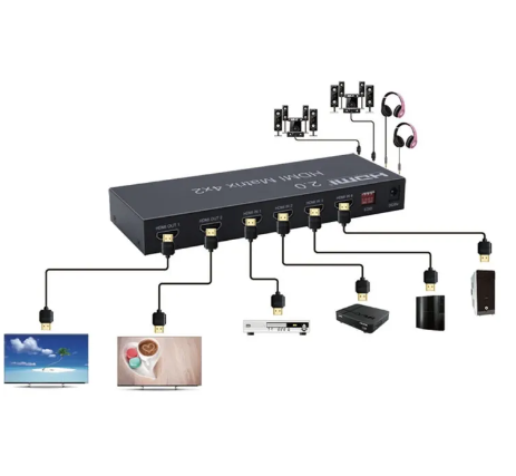 4 in 2 out HDMI Matrix allows you to connect 4 inputs to 2 HDTVs/Monitors /Projectors at the same time