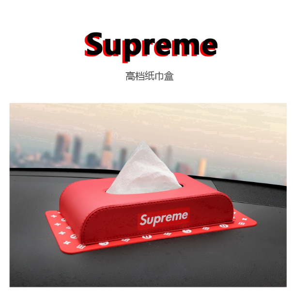 Name: Supreme high-grade tissue box Material: leather Size: 23.5*13.2*4.8cm Model: Tide brand red, street card black Scope of application: General No anti-slip mat(ไม่มีเสื่อมันแค่การตกแต่ง)