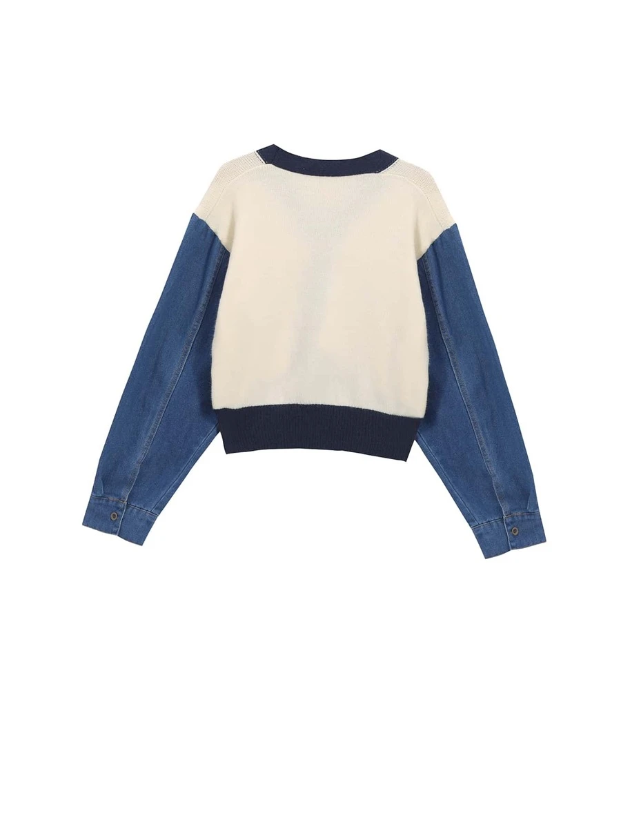 Honeyspot เสื้อคาร์ดิแกน ครอป แขนเสื้อที่ตัดกัน เย็บปะ i-48