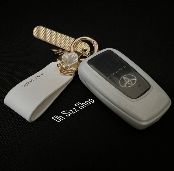 K88-เคสรีโมทรถ ขาวมุกพร้อมพวงกุญแจพรีเมียม Toyota Cross 2022 แบบฝาปุ่มใสหน้าหลัง สามารถดึงกุญแจในรีโมทได้