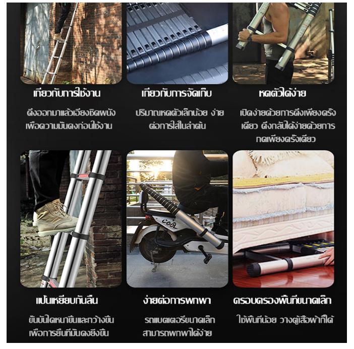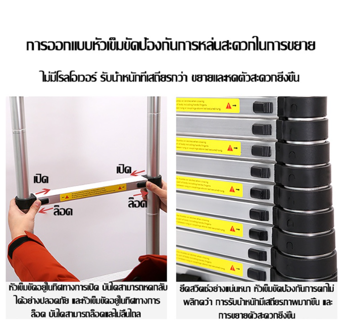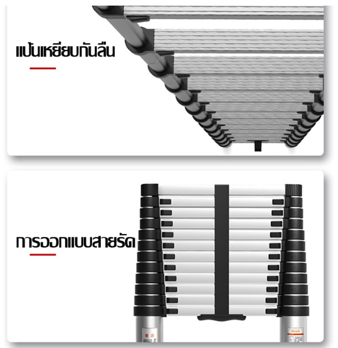 - บันไดแต่ละขั้นสามารถยืดได้และล็อคได้