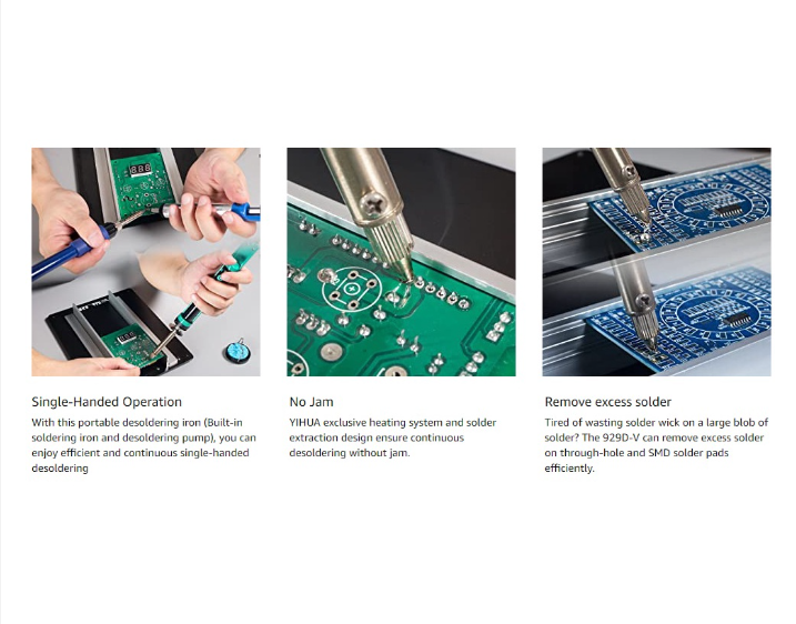 YIHUA 929D-V -ปากกาดูดตะกั่วต่อปลั๊กไฟบ้าน 220V หัว US PLUG คุณสมบัติ - ละลายก้อนตะกั่วได้ - ดูดหัวตะกั่วสูงสุดขนาด 1.2 มม. - สามารถเติมหัวตะกั่วเก่า ก่อนดูดออกได้ ราคาดีขนาดนี้ คุ้มครับ ราคายังไม่รวม vat 7% ครับ