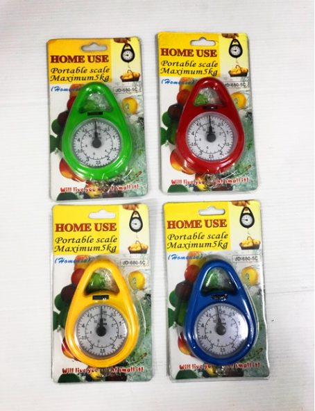 ตาชั่งขนาดเล็ก พกพาสะดวก แบบแขวน ชั่งได้ไม่เกิน 5 kg วัสดุทำจากพลาสติกคุณภาพดี มีตะขอสำหรับแขวนของเพื่อชั่งน้ำหนัก