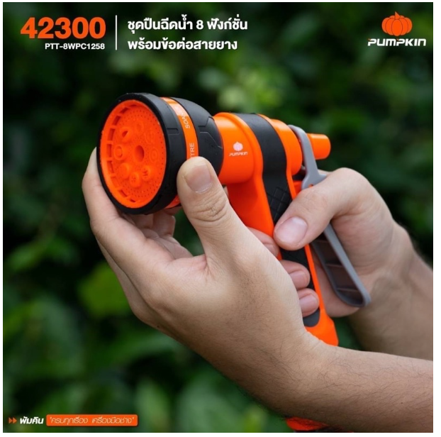 ⭐ PUMPKIN ชุดปืนฉีดน้ำ 8 ฟังก์ชั่น พร้อมข้อต่อสายยาง 1/2"-5/8" PTT-8WPC1258