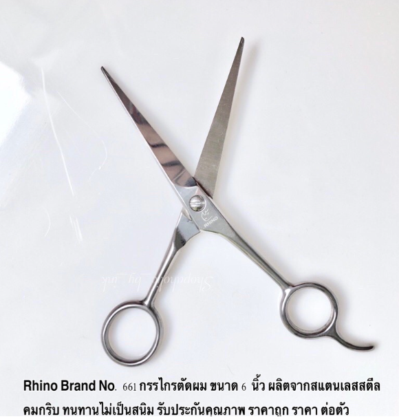 Rhino Brand No. 661 กรรไกรตัดผม ขนาด 6 นิ้ว ผลิตจากสแตนเลสสตีล คมกริบ ทนทานไม่เป็นสนิม รับประกันคุณภาพ ราคาถูก ราคา ต่อตัว