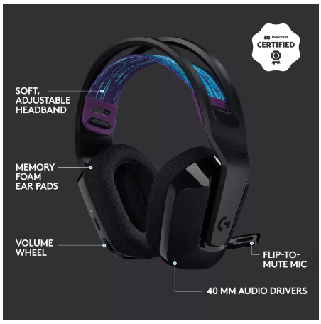 Logitech G535 LIGHTSPEED Wireless Gaming Headset หูฟังเกมมิ่งไร้สายมาพร้อมกับแถบคาดศีรษะ ที่ครอบหูเมมโมรี่โฟม ใช้ได้ทั้ง PC และ PlayStation®