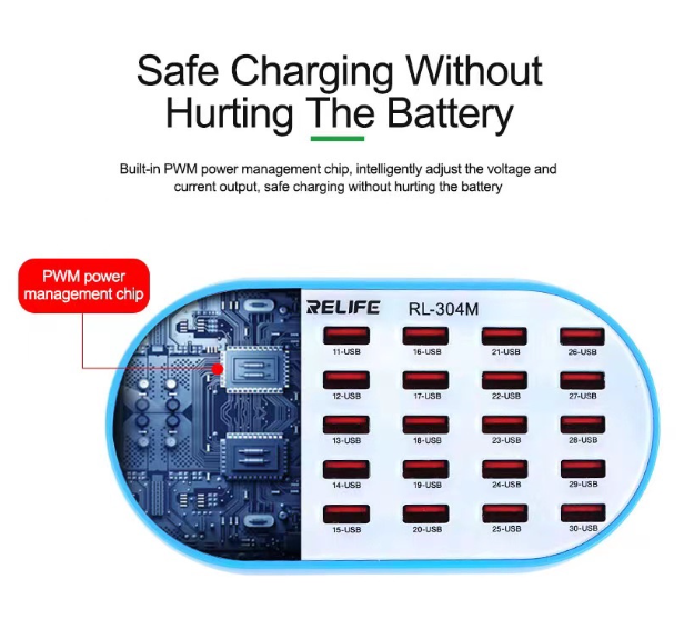 30ช่องUSB RELIFE RL-304Mมีพัดลมอยู่ข้างใน 1A-2.4A 160W