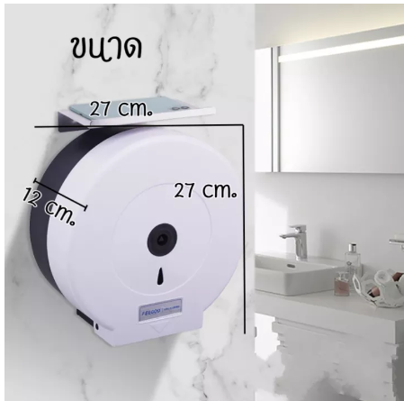 ข้อมูลเฉพาะของ กล่องทิชชู่ในห้องน้ำ กล่องทิชชู่ กล่องใส่กระดาษชำระม้วนใหญ่ สีขาว-ดำทูโทน ไซส์จับโบ้มาตราฐาน /1778