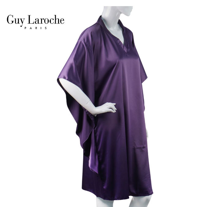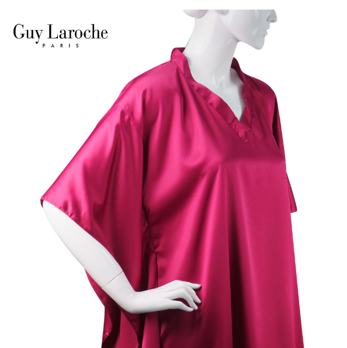 SA1>ชุดนอน แบรนด์ GUY LAROCHE กระโปรงยาวคลุมเข่า ทรงค้างคาวสั้น คอวี ไหล่ล้ำ เนื้อผ้าซาติน เนียน นุ่ม ลื่นเย็นสบาย GV3769 **