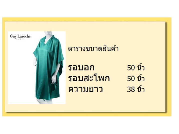 GUY LAROCHE ชุดนอน  MIDI เดรส กระโปรงทรงค้างคาวสั้น  คอวี ไหล่ล้ำ ชุดอยู่บ้านแม่ชอบมาก เนื้อผ้าซาติน เนียน นุ่ม ลื่นเย็นสบาย ไม่ร้อน GV3769 เดรสคุณนาย เนื้อผ้าซาติน เนื้อเนียน ลื่น ใส่แล้วเย็นสบาย  เป็นชุดใส่อยู่บ้าน คุณน้าย คุณนายจริงๆ ค่ะ งานเย็บปราณีต เรียบร้อย งานพรีเมี่ยม รับประกันคุณภาพจากผู้ผลิตในเครือ ไทยวาโก้ ผู้ผลิตชุดนอนแบรนด์ Guy Laroche ดีไซน์รูปแบบ เดรสกระโปรง  คอวี ทรงเสื้อปีกค้างคาว  เดรสแบบสวมหัว แขนชุดนอนเป็นทรงทิ้งระบาย  ดีไซน์ งานปัก Guy Laroche ที่อกเสื้อ งานปักปราณีต สวยงาม ฟรีไซส์  ทรง Oversize ใส่ได้ตั้งแต่ไซส์ M - XL    รอบอก สะโพก ได้ถึง 50 นิ้ว  ความยาวชุด 38 นิ้ว ใส่แล้วทรงกระโปรงทิ้งตัวสวยตามรูปร่างผู้ใส่  ใส่แล้วไม่อ้วน ไม่เทอะทะ ความยาวกระโปรงยาวกรอมเท้า ชายกระโปรงผ่าข้างทั้ง 2 ข้าง ให้ก้าวขาได้สะดวก ไม่ติดขัด