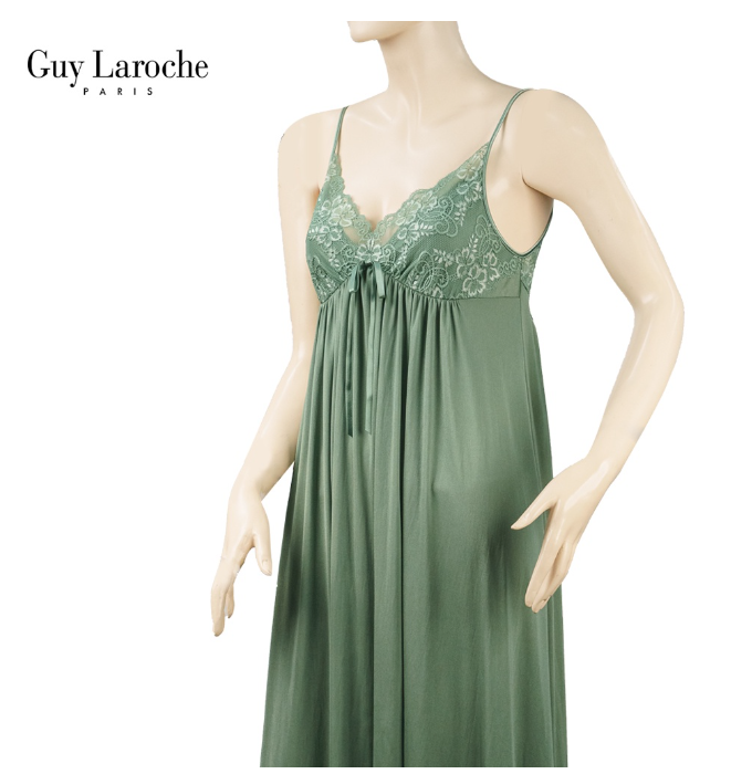 ชุดนอน แบรนด์ GUY LAROCHE ผ้า Smooth Knit กระโปรงยาว ชุดนอนสายเดี่ยว Maxi Luxury Nightwear GN3J86 ผ้าไนลอนทอพิเศษจาก Japan ดีไซน์หรูหรา เซ็กซี่ แต่งลูกไม้สวยงาม สินค้าแบรนด์แท้ จากผู้ผลิต และจำหน่าย บริษัทภัทยาอุตสาหกิจ จำกัด บริษัทในเครือ ไทยวาโก้ และสหพัฒน์ฯ Luxury Nightwear ชุดนอนกระโปรงยาว Maxi (ความยาว 120 cm.) GN3J86 เนื้อผ้า Smooth Knit ผ้าไนล่อนทอพิเศษจาก JAPAN เนื้อละเอียด นุ่มเนียน ให้สัมผัสที่นุ่มเนียน ละเอียด เนื้อผ้าพิเศษที่มีเฉพาะ แบรนด์ Guy Laroche เท่านั้น compositions : Nylon 100% ชุดนอนกระโปรงยาว สายเดี่ยว แต่งลูกไม้โปร่งบาง เพิ่มความเซ็กซี่ รูปแบบคอ V แต่งลูกไม้ช่วงอก และตัดต่อใต้เต้า เพิ่มความหรูหรา เซ็กซี่ เย้ายวน เนื้อลูกไม้นุ่ม ยืด ใส่สบาย ไม่ระคายผิว ใต้อกรูดย่น ลำตัวปล่อย วงแขน กว้างไม่อึดอัด สวมใส่สบาย เนื้อผ้าให้สัมผัสที่นุ่ม ละมุน เย็นสบายผิว ขนาดสินค้า S , M , L ** รายละเอียดไซส์ดูจากตารางได้เลยค่ะ ***