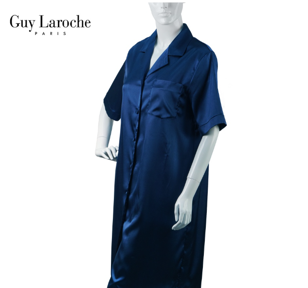 SA17>ชุดนอน แบรนด์ Guy Laroche ผ้าซาติน มิดี้ Midi Home Shirt คอปก กระดุมหน้า ความยาวคลุมเข่า GV3737