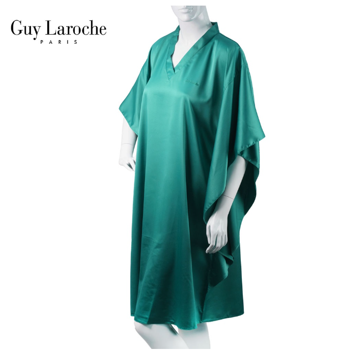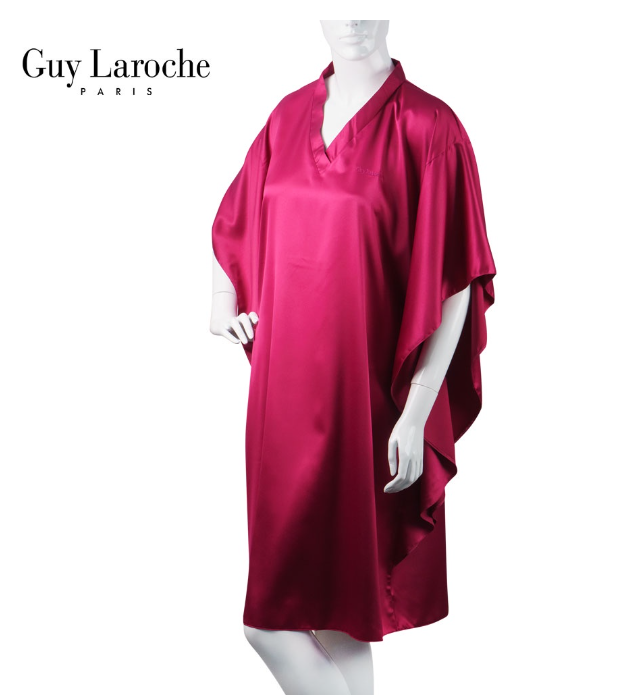 GUY LAROCHE ชุดนอน MIDI เดรส กระโปรงทรงค้างคาวสั้น คอวี ไหล่ล้ำ ชุดอยู่บ้านแม่ชอบมาก เนื้อผ้าซาติน เนียน นุ่ม ลื่นเย็นสบาย ไม่ร้อน GV3769 เดรสคุณนาย