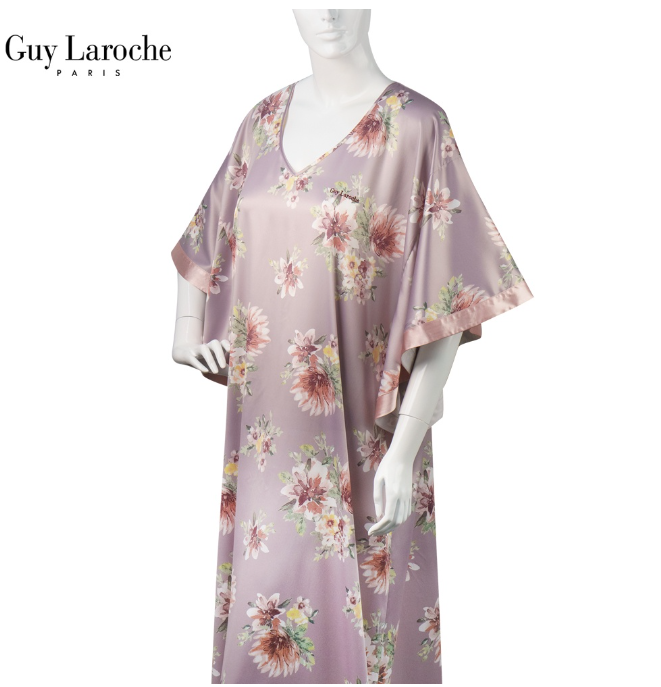 ชุดนอน แบรนด์ Guy Laroche เดรส กระโปรงยาว ทรงค้างคาว คอวี ไหล่ล้ำ ชุดอยู่บ้านแม่ชอบมาก เนื้อผ้าซาติน เนียน นุ่ม ลื่นเย็นสบาย ไม่ร้อน เดรสคุณนาย