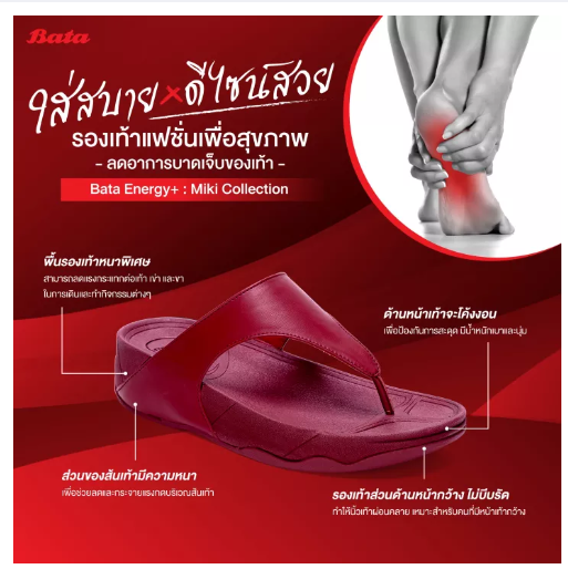 Specifications of Bata บาจา Energy+ Miki Collection (Online Exclusive) รองเท้าเพื่อสุขภาพ รองเท้าแตะเพื่อสุขภาพ รองเท้าใส่สบาย แบบหนีบ สำหรับผู้หญิง รุ่น Miki สีแดง 6715766