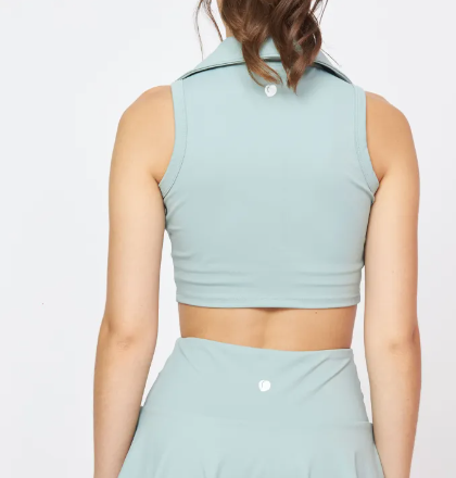 SF39-Luxeflex Collar Crop Top (Monaco) - เสื้อยืดฟ้า / เสื้อออกกำลังกาย เสื้อผ้าโยคะ เล่นกีฬา