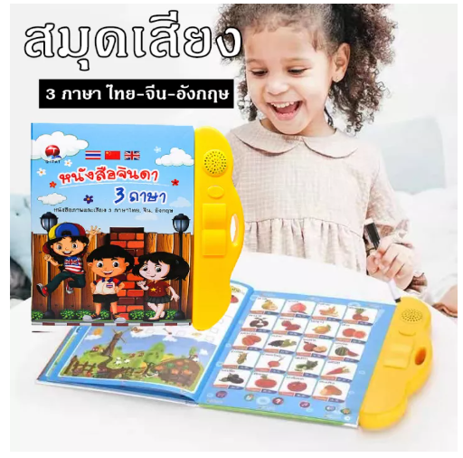 TOY27-หนังสือจินดาสินค้าพร้อมส่ง หนังสือพูดได้ หนังสือสอนภาษาเด็ก E-Book3ภาษา TH CN EN หนังสือสร้าง IQ&EQ หนังสือสะกดคำ ไทย จีน อังกฤษ