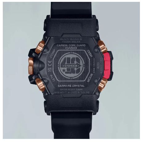 Introducing the G-SHOCK 40th Anniversary Flare Red — an eruption of fiery color in two limited-edition timepieces celebrating the 40th anniversary of the 1983 G-SHOCK debut. Inspired by the intense power of the solar flare, the MTG-B3000 and GWG-2000 both radiate G-SHOCK brand black and red, delivering the best new technologies from Casio. A multicolor carbon-insert bezel, crafted of layers of carbon and glass fiber sheets containing phosphorescent particles, evokes the massive explosive power of the sun’s surface, yielding a timepiece that radiates with glow-in-the-dark beauty. Individually and uniquely patterned bezel components — no two alike — result in truly one-of-a-kind lightweight watches of rugged strength. Take it even higher with the GWG-2000 bezel components, made of forged carbon fiber with phosphorescent particles to match the bezel with solar flare patterns that glow in the dark. Both models feature a solar flare pattern printed on the dial, as well as an Eric Haze-designed logo commemorating the 40th anniversary of G-SHOCK engraved on the case back and four stars for 40 engraved on the band loop. These meticulously beautiful, uniquely impactful timepieces are just right for kicking off the G-SHOCK 40th anniversary celebration.